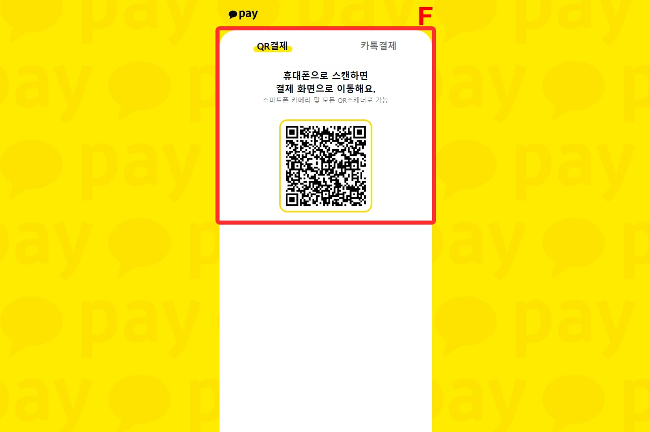 You will be redirected to the payment page where a KakaoPay QR code (E) will be displayed.